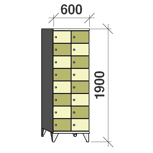 - Kaapin mitat jaloilla H x L x S (mm) on 1900x600x545.