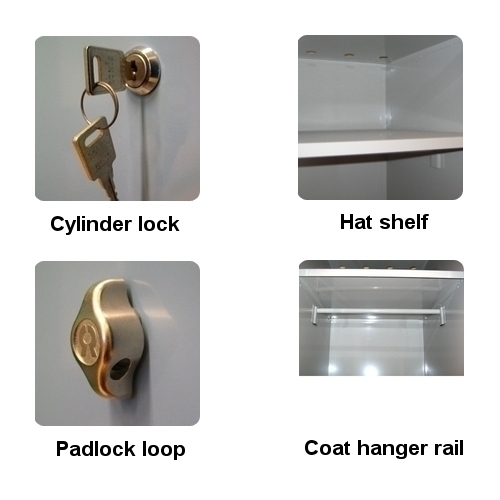 - Jokainen kaappiosa sisältää hattuhyllyn, vaatetangon ja 2 vaatekoukkua.