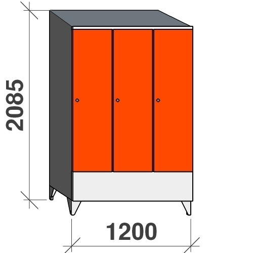 Vaatekaappi 3:lla ovella 2085x1200x545 lyhytovinen, viistokatolla