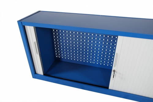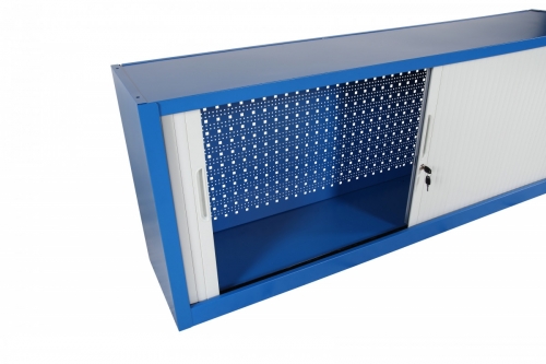 Seinälle asennettava työkalukaappi rullaovilla – älykäs ja tilaa säästävä säilytys! Rullaovilla varustettu työkalukaappimme on täydellinen ratkaisu järjestettyyn ja turvalliseen työkalujen säilytykseen. Kaappi asennetaan seinälle ja siinä on käytännöllinen työkalupaneeli koukuilla, mikä tekee työkalujen ripustamisen ja järjestämisen helposti selkeästi ja räätälöidyllä tavalla. Tämä kaappi on ihanteellinen työpajoihin, autotalleihin ja teollisuusympäristöihin, joissa organisoitu ja tehokas varastointi on välttämätöntä.