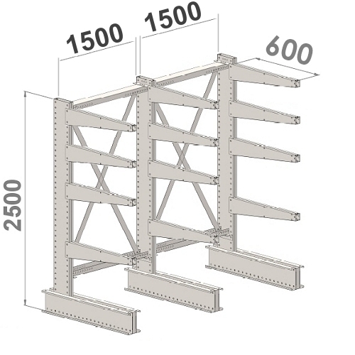 Set 3 L-Posts+12 Cantilevers 2500Hx3000Wx600, 5 levels