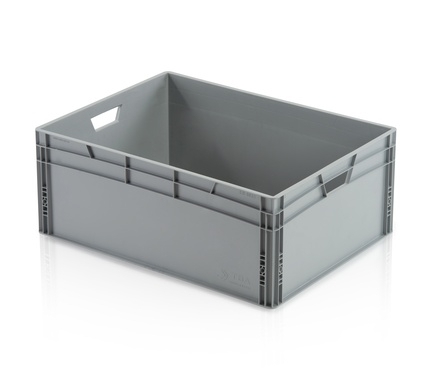 Resistant to cold, contact heat, acid and alkali. Plastic boxes made of high-quality polypropylene. Optimized for use in automated logistics (suitable for use on moving and roller conveyors).